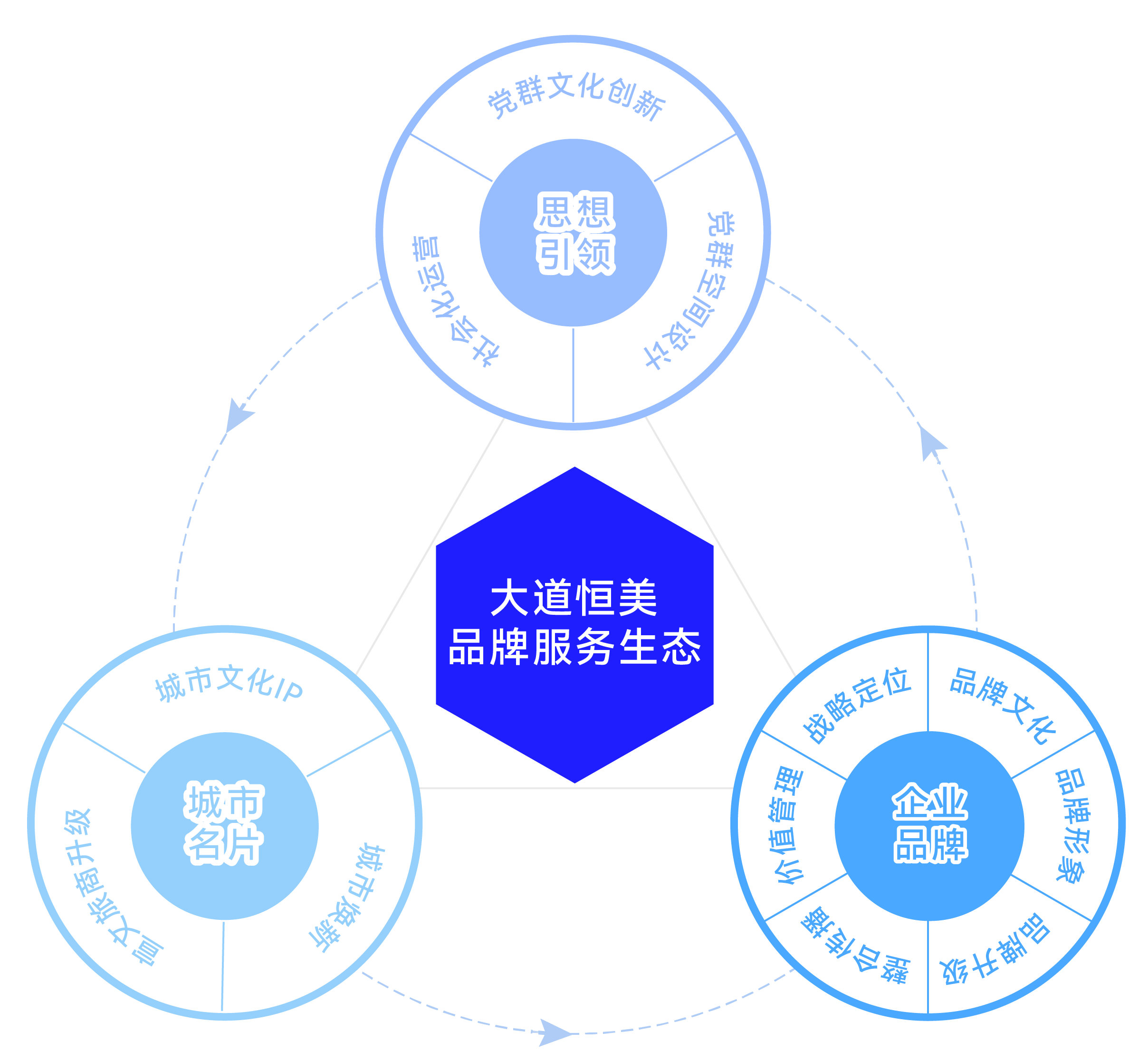 大道恒美创立以来,经历9年打磨,研发了全球独创的“大品牌战略”体系。我们深知品牌是一个复杂的工程,更需要系统化建设。“大品牌战略”体系创立后,大道恒美将其运用于150余企业品牌建设与创新,并服务了众多百亿级、千亿级企业,辅助多个政府机构实现品牌创新,驱动城市经济文化发展。