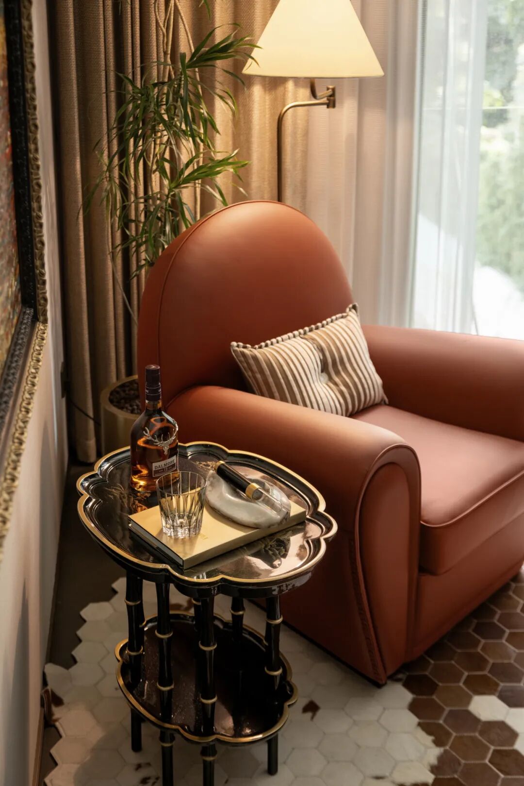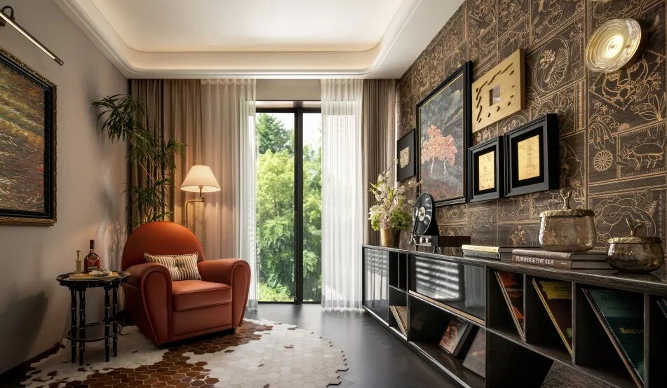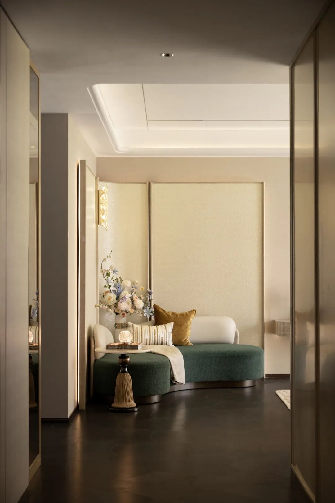 暗纹壁纸的岁月肌理、复古挂画的叙事笔触、留声机摆件的时光低语,缓缓释放怀旧的醇香;而利落的金属线条、简洁的灯光几何、剔透的现代器皿,则如清冽的当代音符,注入摩登的精致感。