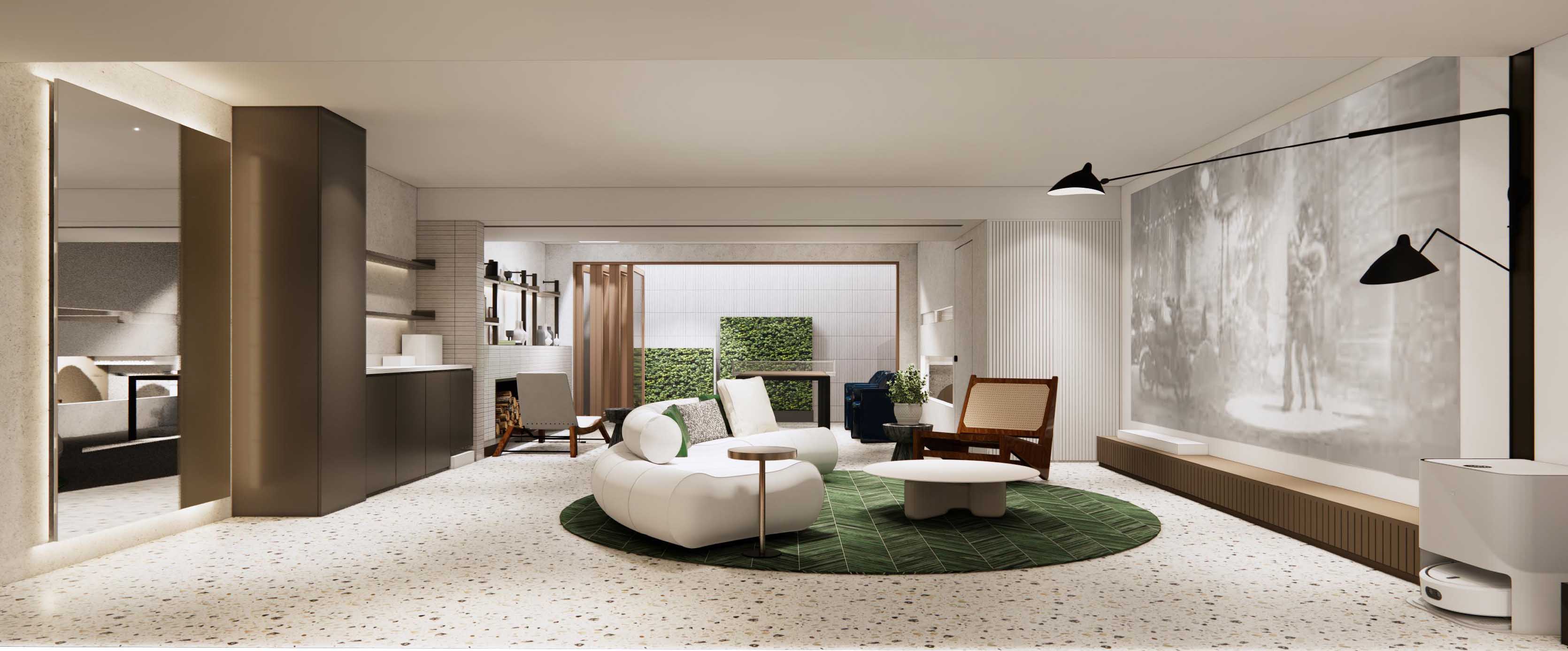 立足于项目地标级的高定位,设计师将空间视作与城市共生、与时代共进的精神缩影,希望以“城市艺廊”的概念为开篇,让抽象的精神回归真实的生活现场,延展开来一场具象化的生动诠释,最终形成人与城市、空间的共同体。