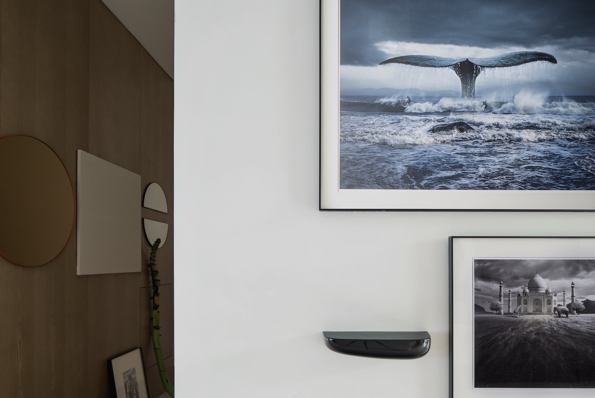 玄关:这是我们一家五口在三亚的度假屋。我很喜欢门口玄关处的这一面镜子。对我来说,这处看似不起眼的设计,为生活预留了更多可能的美。比如,我每一次去的时候,都会在这个柜子上放一个精致花瓶,插上自己喜欢的植物,视线于此扫过,生活琐碎间的优雅情致,映照而出,自然流露。