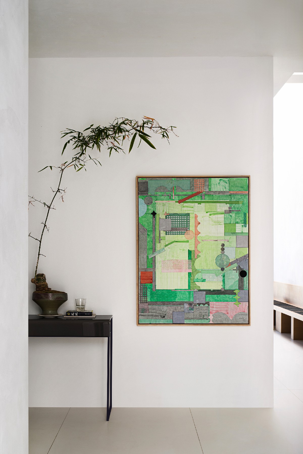 同时,物品是人们留存记忆非常重要的载体,能够唤起对当时当地的情境回溯,是构成生活的重要组成部分。当ACE DESIGN在为不同的住宅选择艺术品的时候,实际上设计师要思考的是业主一家的偏好、艺术家的气质和空间场景的交织关系,“我们希望,一方面是出于业主的审美自主性,另一方面则是不趋附于市场审美体系和流行浪潮,能带来历久弥新的效果。”
