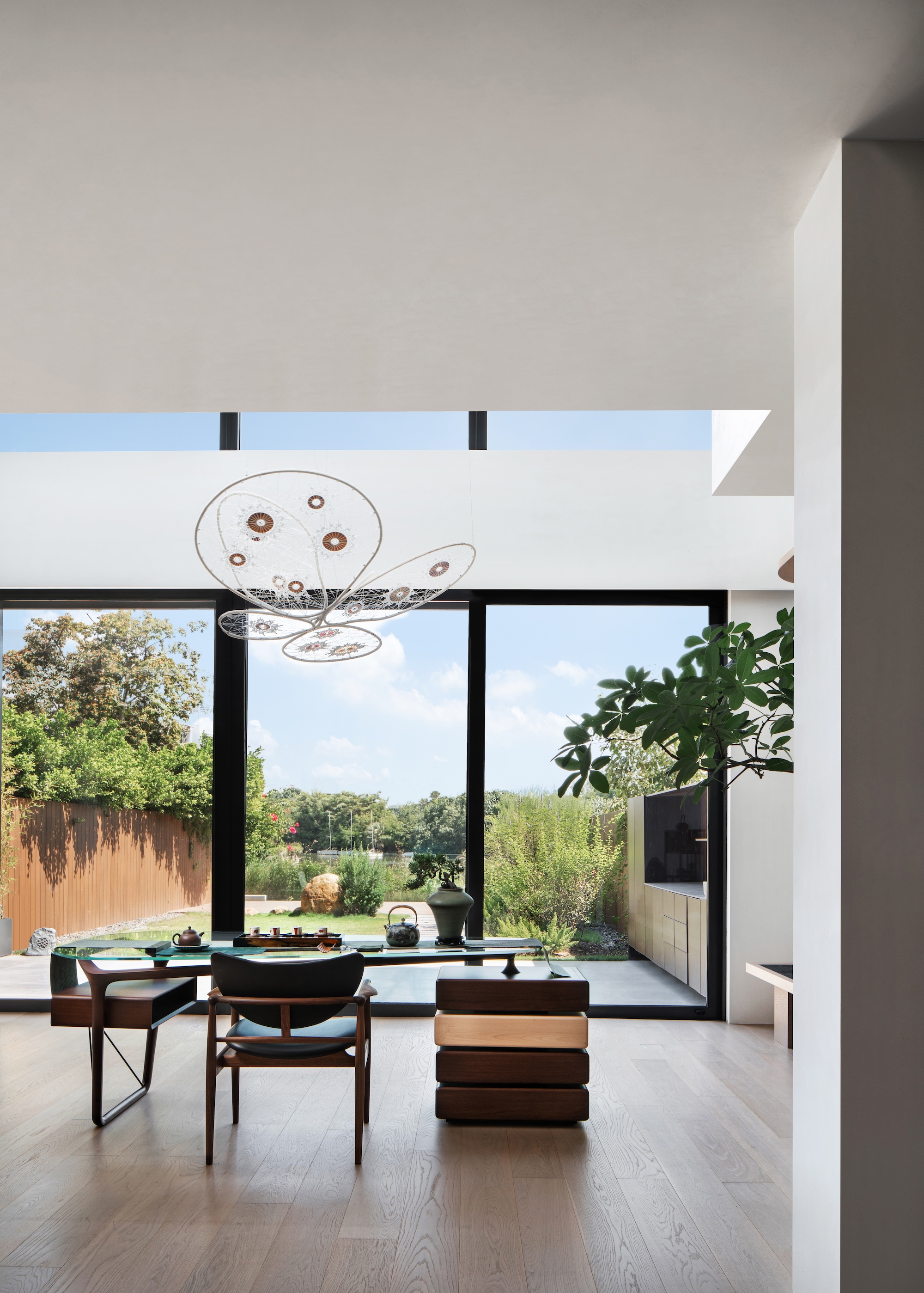 在国内外斩获多项荣誉的新作 ——成都湖岸艺术家,遍布于居所中的藏品,分别来自艺术家常玉、屠宏涛、杨冕、李俊、黎朗、杉本博司、胡顺香、翟倞、阿斯巴甜…谈及这一项目的艺术家及艺术品选择,ACE DESIGN表示设计师契合业主热衷于艺术品收藏的鲜明态度与高标准审美。在为业主选购家具艺术品时,与业主自购或收藏的艺术品相呼应,同时考虑到为业主留下自由发挥的余地,以相对留白的设计,创造艺术的弹性空间,让空间服务于居者一家的闲逸生活。