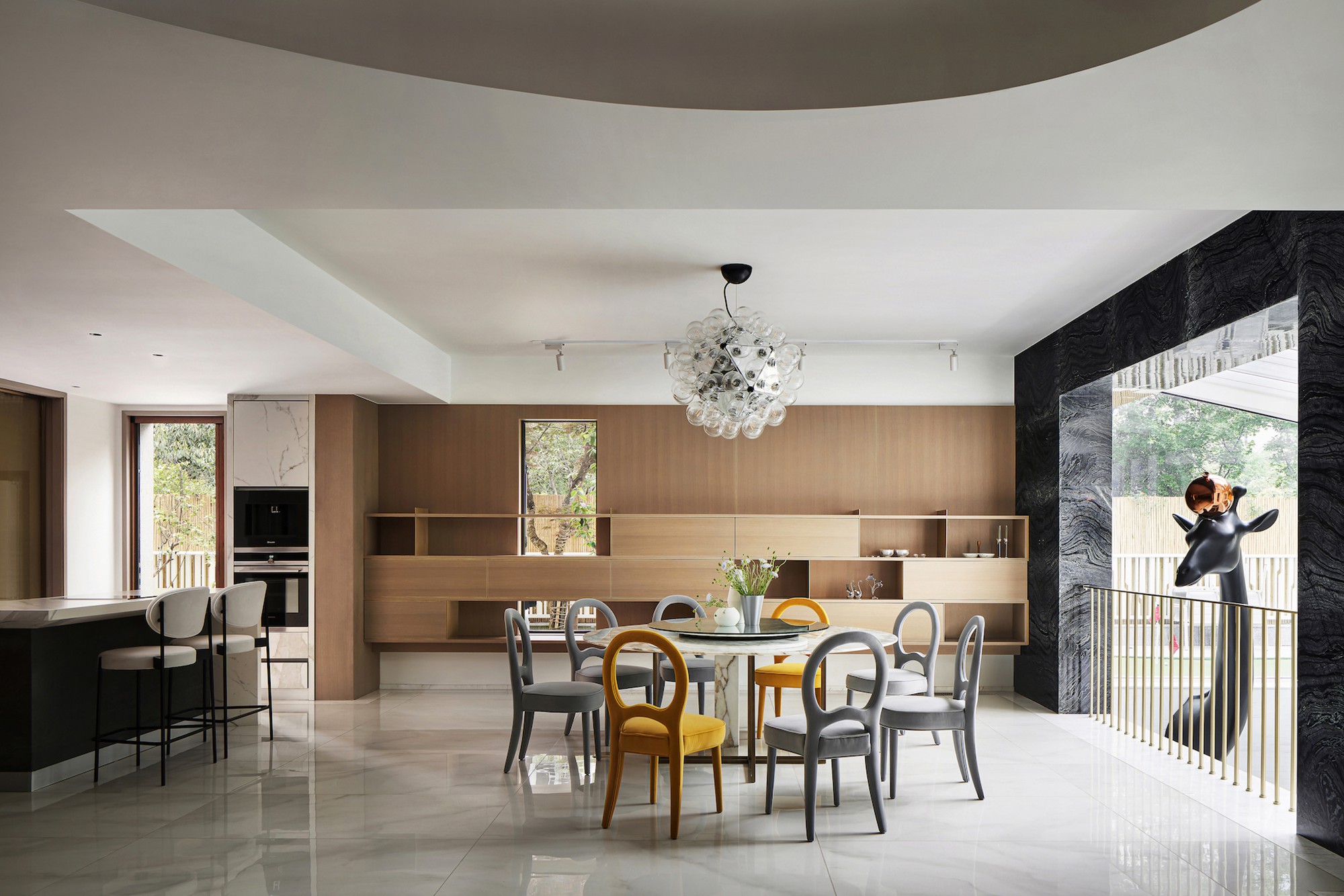在澜·岸项目中,ACE DESIGN特别定制的长颈鹿艺术装置,从中庭横穿至客厅窗前,以不同楼层间的艺术交互,促进了更加融洽的亲子陪伴关系与情感交流模式。