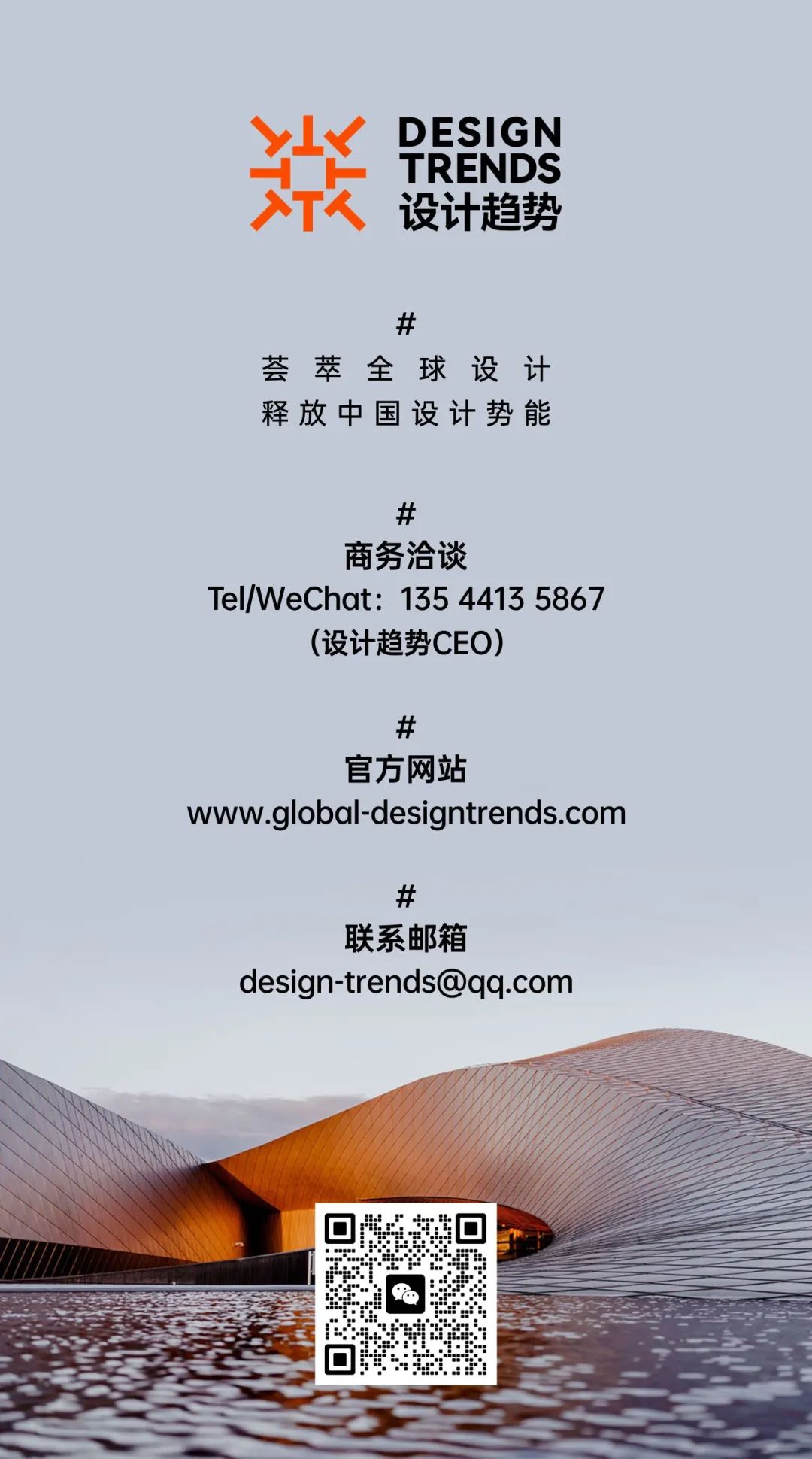 「设计趋势 DESIGN TRENDS」是基于经营增长和品牌发展为目的,并着力在设计创新领域的专家级领航员,并以提升中国设计的综合竞争力与影响力为使命的国际性商业赋能平台。