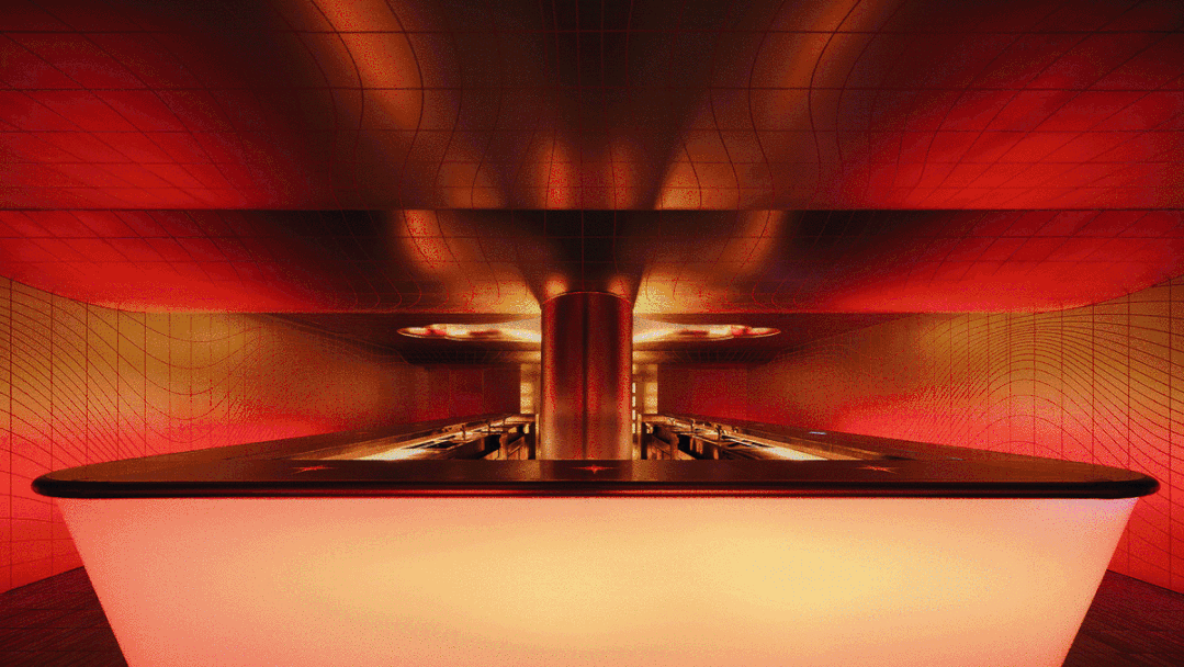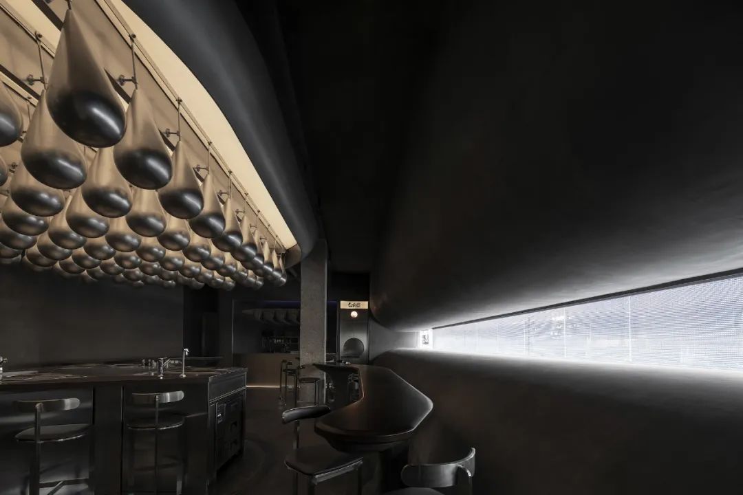 打破COCKTAIL&WHISKY BAR的传统定义,将源自未来主义的粗野、先锋、无畏的美感发挥到极致,寸匠熊猫NANA设计通过艺术感与科技力叠加的社交场景,营造出身处未来世界的空间错觉。其中,从建筑立面到室内空间,无处不在的圆润曲线与网格,让整个空间充盈着现代化的数字氛围。除此之外,无论是玄关处的太空人,还是大吧台的 “孕育中的人类”,均形成个性十足的“打卡位”,以先锋的视觉吸引力,吸引年轻的猎奇客群。