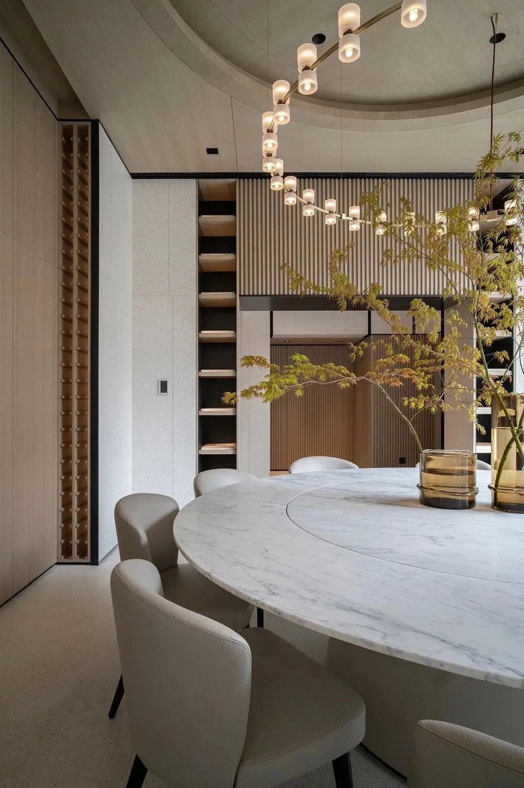 在这座上海顶尖私人住宅翠湖五集中,设计师基于新一代消费群体的审美与价值判断,深入思考东西方的界限,探讨在当下东方语境中,人与空间、空间与家、家与个人的关系。水墨、宣纸、秩序感描绘东方写意,褶皱、线条、建筑感营造当代气质,其巧妙地融汇东方美学与现代主义语汇,构筑起与艺术、阳光一起呼吸的记忆容器。