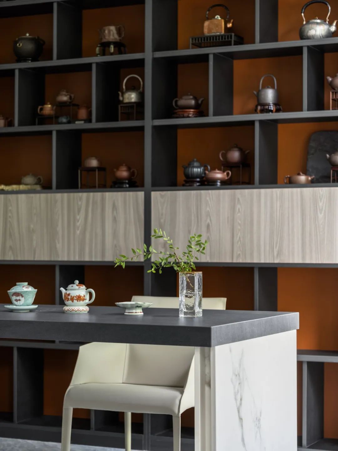 及至2015年前后,随着对现代主义、折衷主义等西方思潮的内化,“新中式”风格逐渐退出历史舞台,取而代之的是“东方美学风格”。有别于传统中式与新中式的直白,设计师大多取材于道法自然之中,并以新的工艺、技法、材料呈现出东方写意与古典意境,比如以格栅营造空间朦胧感,以纯粹的色调或元素形成富有想象空间的留白,以解构、变异等形式展现中式传统元素等。