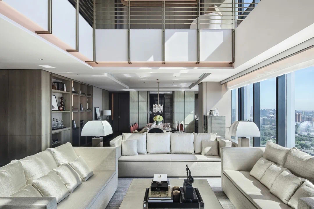 在这套市值过亿的Penthouse中,设计师从社会、环境、科技和文化多个方面的综合思考,以现代艺术与人文风尚,解锁菁英阶层的品牌观念、个性自由和审美品位,演绎出只属于顶级人居的奢华。这种奢华,基于整体空间秩序、功能及细节的把控,但又超越物质层面,是遵循艺术审美对于精神内核的追寻与共感,让人在自然中、在云端、在空间里,感受自在,定义自我价值与未来。