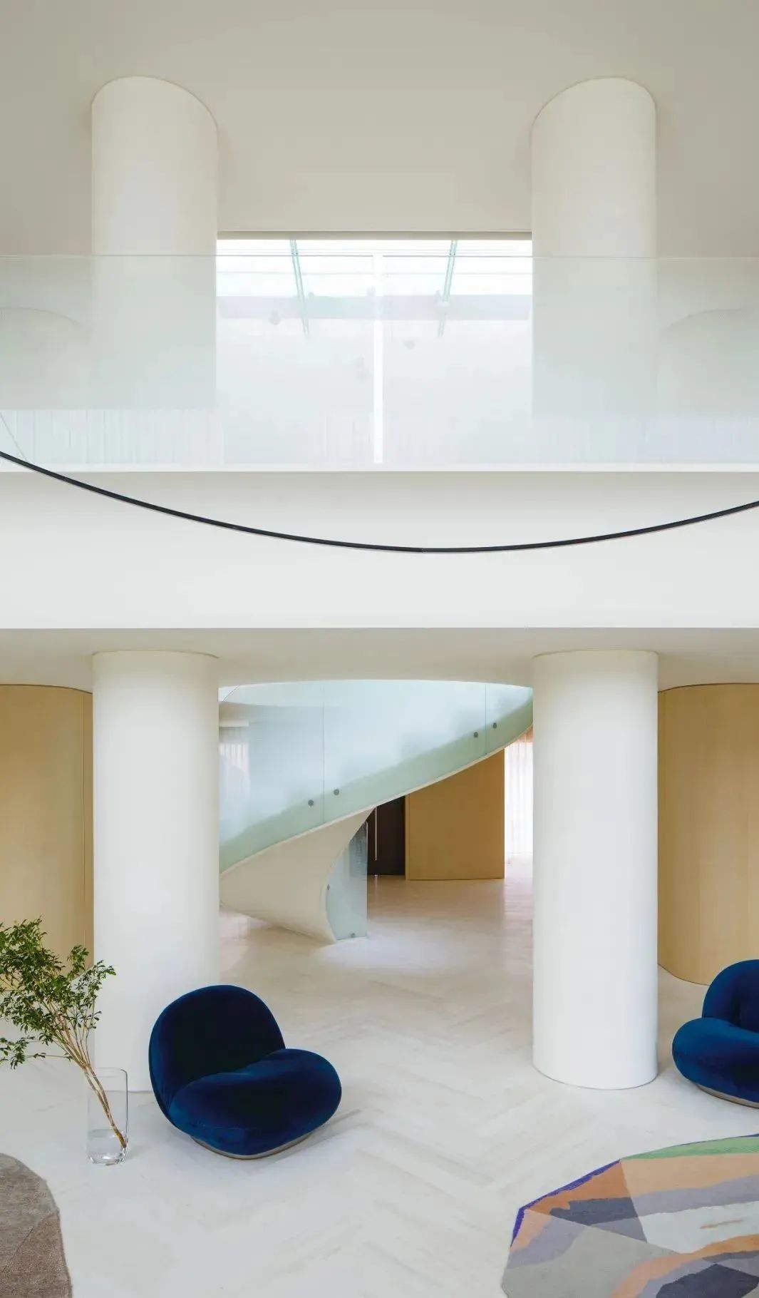 在本案中,面对格局零散、局促的650m²大平层,设计师并未大尺度重整结构,转而选择在视觉层面应用“片段式”手法,采用叠加、重组等方式再造空间秩序,以非对称、立体、圆曲的布局,在温和微妙的“解构”之中营造出一股“温柔的飓风”,呈现出超越具象主题概念、真实生活的艺术度假私宅。