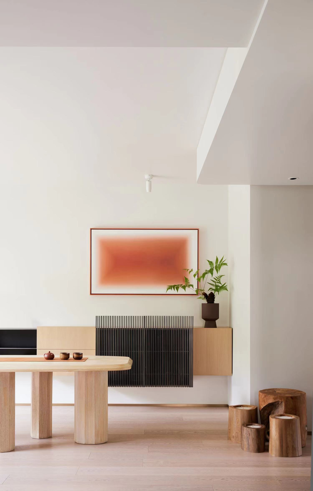 德国哲学家谢林在其《艺术哲学》一书中说:“建筑是凝固的音乐”。然而,建筑不只是凝固的音乐,音乐和建筑都属于艺术,都是通过体验激发人们心灵感受和想象力的艺术。在本案中,设计师通过构造、空间、光影所形成的节奏、韵律,令“家”具有了感染人心的共情力,建筑手法、艺术美学在这里,共同构筑起当代住宅的美学体验,链接着家人之间的情感。