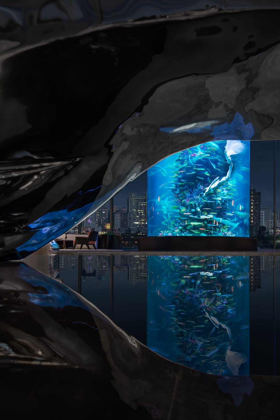 长沙旭辉·铂悦湘江售楼处位于湖南省金融中心核心位置,一线临湘江。从千古流传的古画中汲取一汪湘水的空灵深远,GID设计承灵动不拘、自然随性的潇湘情愫,将海底世界箱引入售楼空间,以艺术性的震撼构筑长沙铂悦湘江的诗意生活方式,为当今地产展示空间设计缔造了前所未有的奇观式体验。