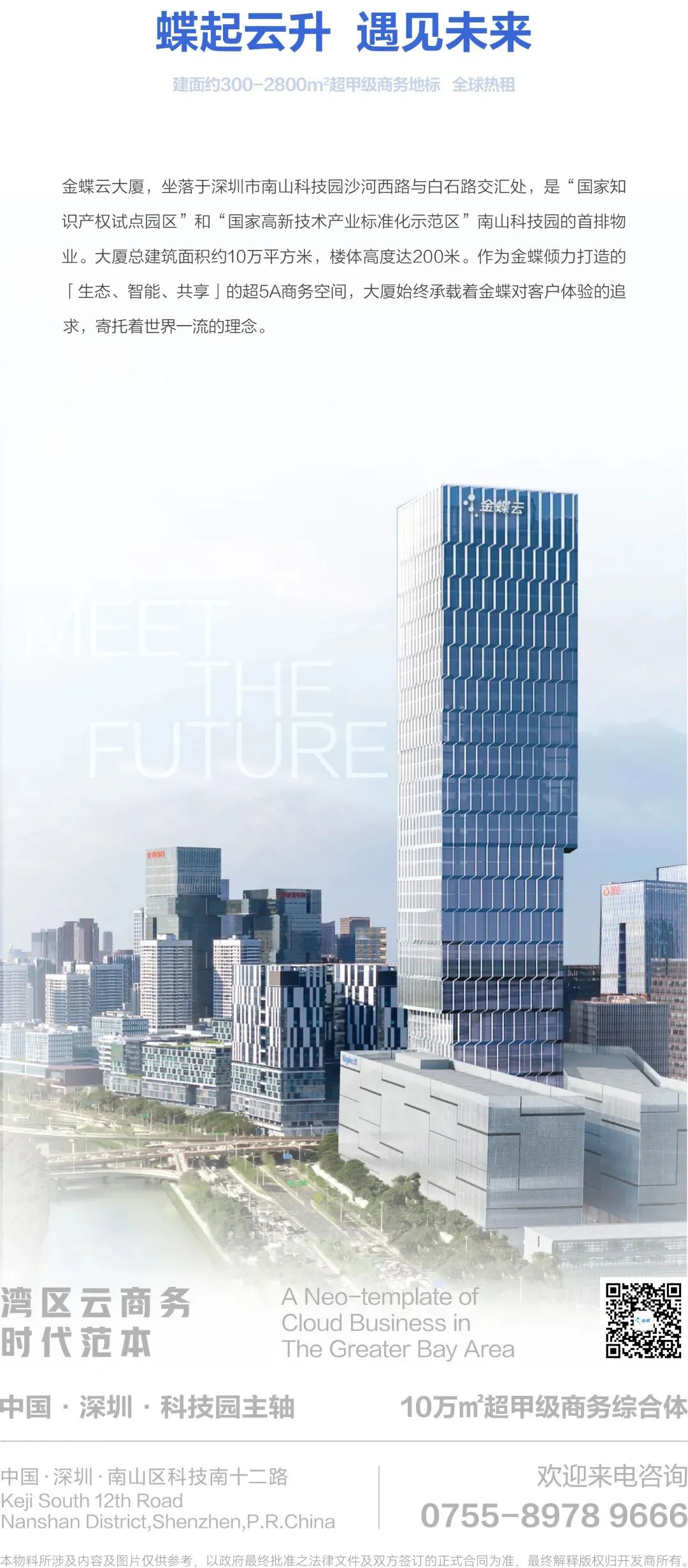 金蝶云大厦作为金蝶集团30周年礼献之作,200米超甲级商务地标全新呈现,以总部级姿态面向世界,具有极强的昭示性。外立面采用钻石切割造型,如湾区天际线上的钻石般熠熠生辉,备受瞩目,为企业赢得树立良好的形象。