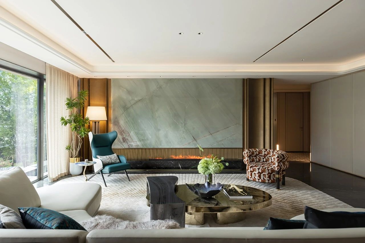 大面积的全景落地窗以沉稳开阔的气魄引世界入局。金属镜面留存生活的意象,篆刻似渺渺波涛也似古老树纹的斫痕。高贵典雅的大理石模拟浩瀚宇宙,宏大精神在永恒中生发,未来的轮廓逐渐明晰。