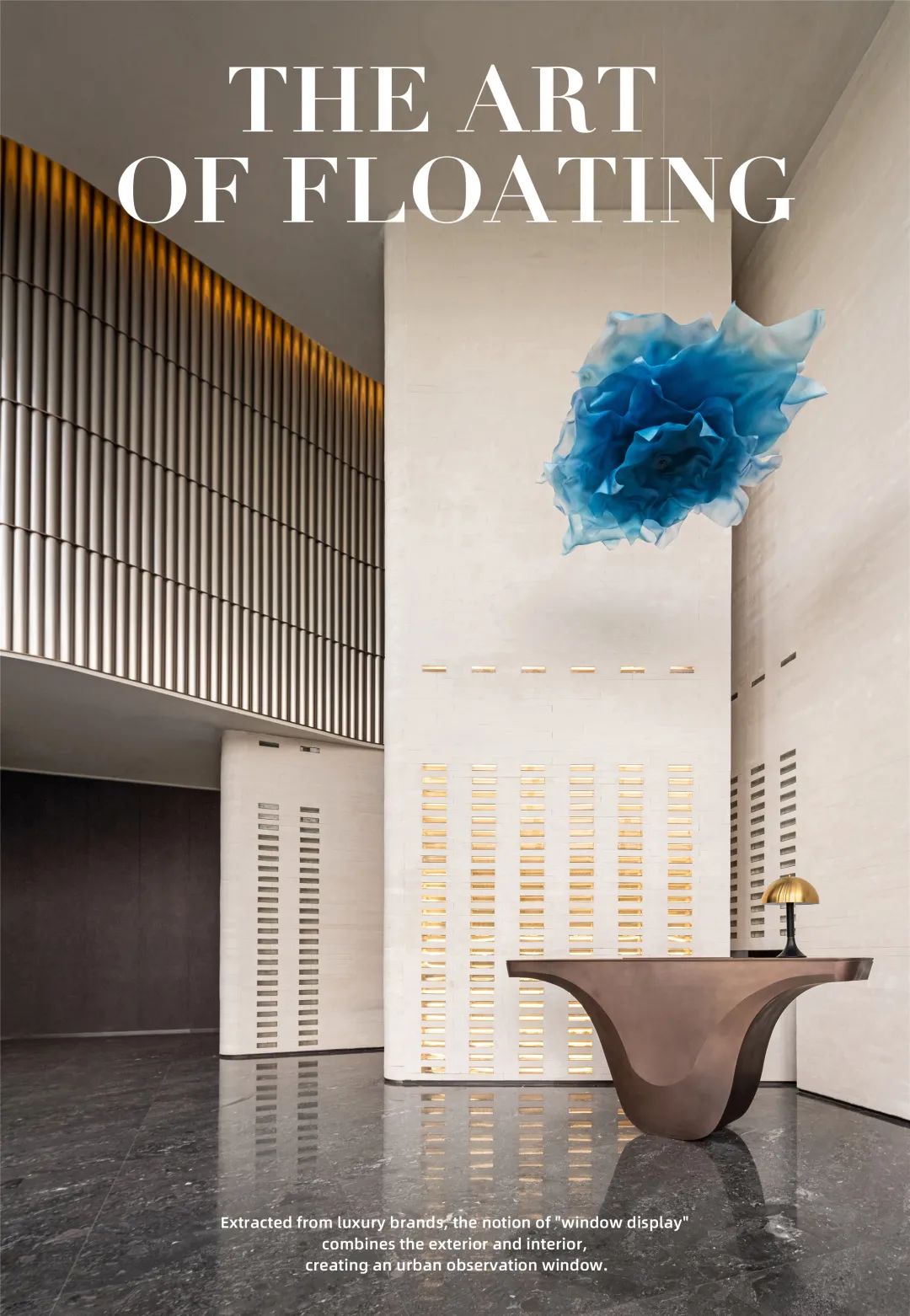 设计师提取云卷云舒的形态,以轻盈飘逸而极具变化感的材料,打造出装置《漂浮的艺术》,在易于感知的艺术形式下,凸显出空间的不凡气质。