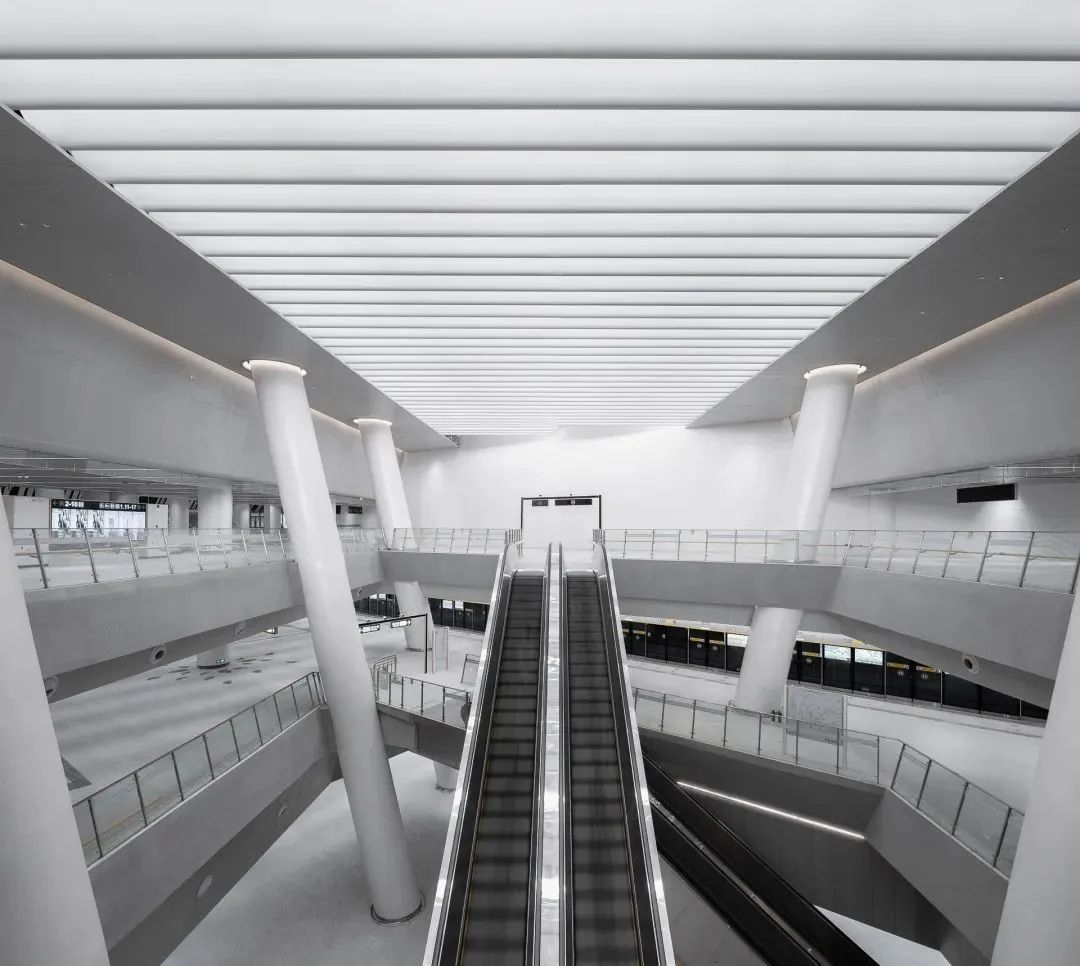 为提升乘客体验,创造出更开放、更人性化的空间,设计团队在扶手、墙面、地面等区域引入暖色材料,营造一个有温度的城市公共空间。