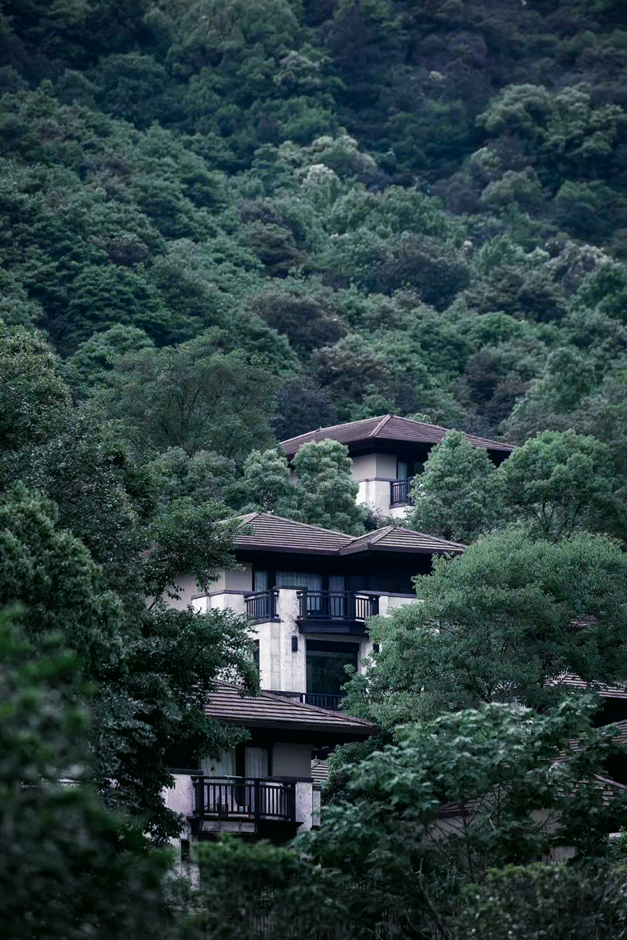建筑设计尊重山形地貌,采用低矮的建筑体量与山体呼应,通过多重院的形式塑造山居生活体验。