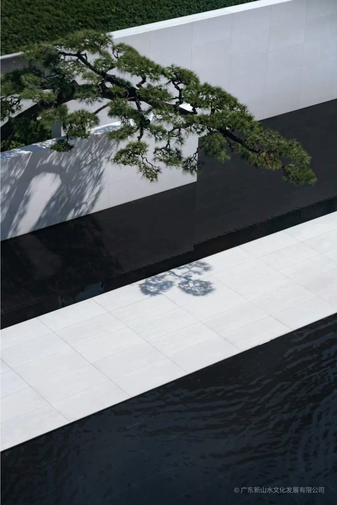 户外水景主要集中在西侧,西侧的过渡空间是全玻璃材质,有了水景的加持,令室内感到通透和开敞。