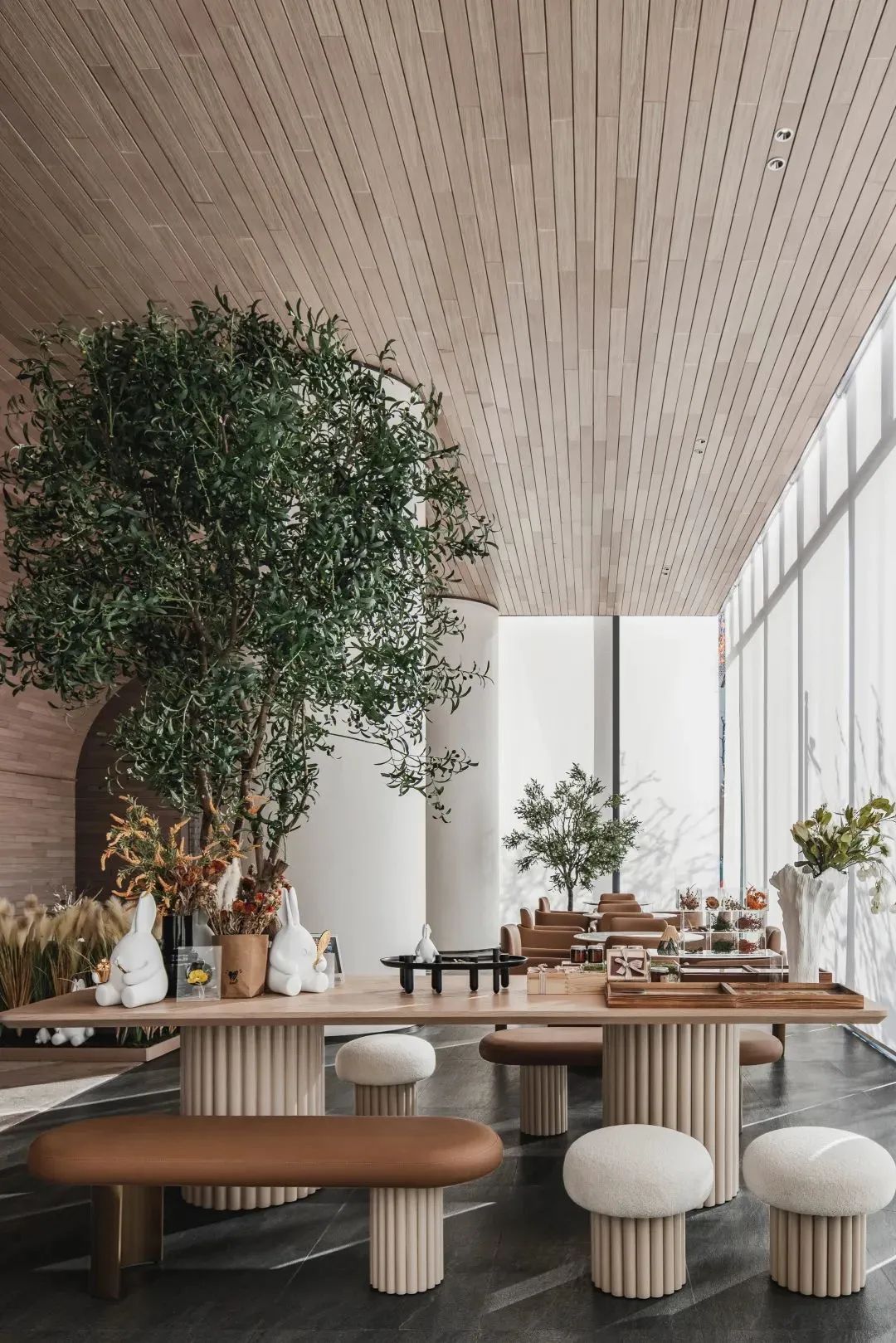 将茂盛的树木种在室内,营造一个自然诗意的书屋。