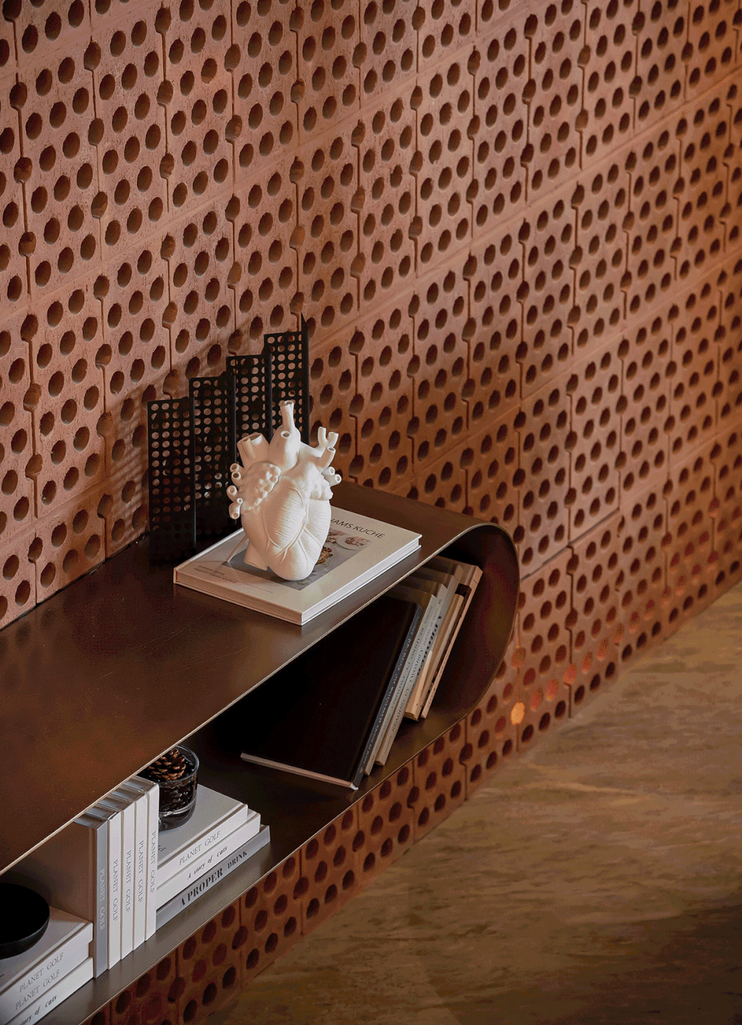 打破传统空间的既定规则,空间的维度顺着整体的布局和脉络延展开来。从天花的立体线、镜面的艺术装置、镂空线条格栅到地面的格纹瓷砖,设计于一点一线的交织间,绘写出深刻的城市记忆。