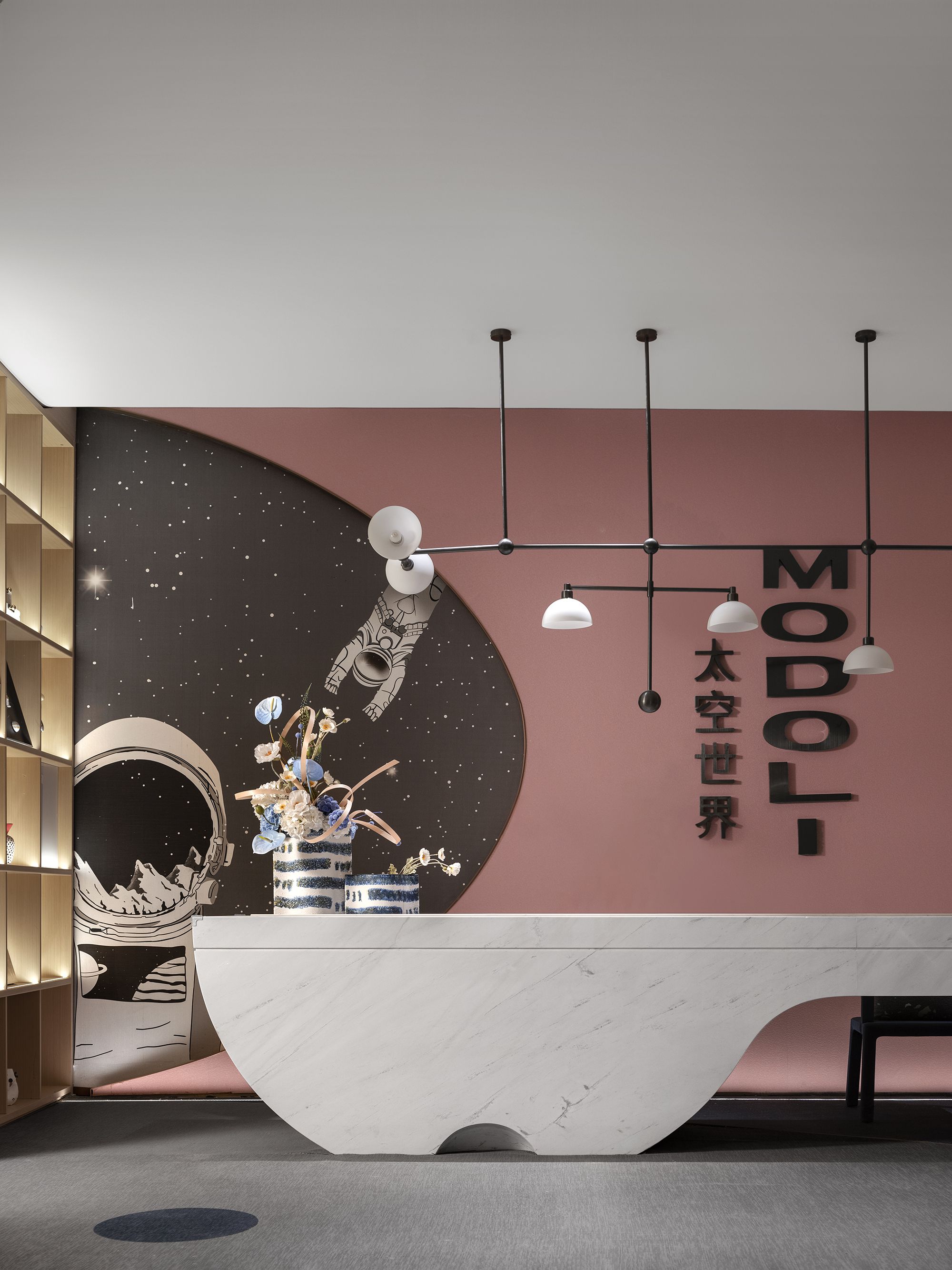 以太空为空间的符号载体,一场星际迷航的漫游之旅成为了设计师导演的主题。“伴随着营销中心的不断迭代与进化,我们希望透过寓教于乐的方式,将社区空间转变为未来家庭生活的核心聚场。在乐趣与温度的蔓延中,这里不止是一个销售中心,更是一个回归童真、体验美好的都市乐园。”