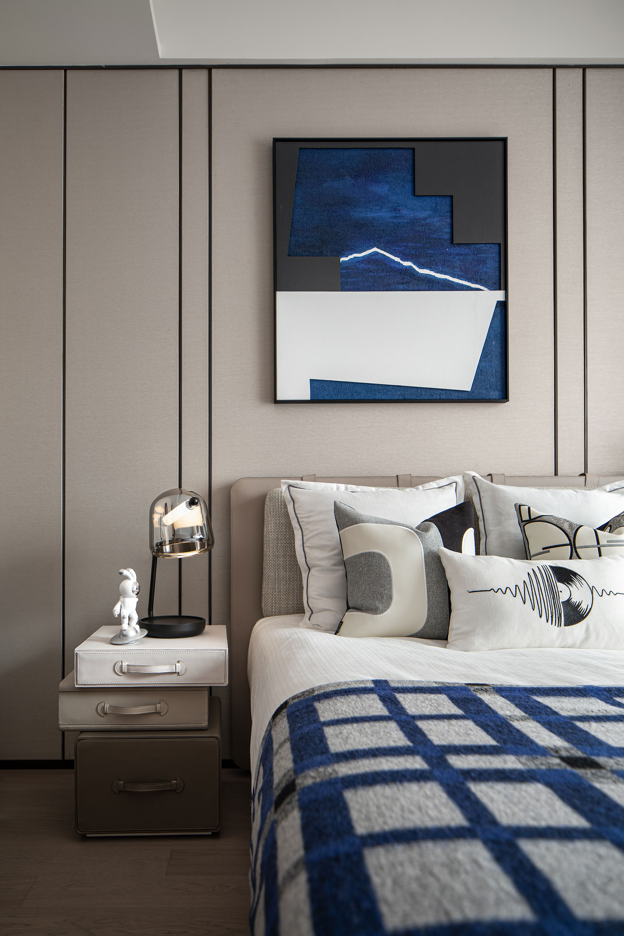 打动人心的空间,特质之一是富有生活的痕迹。主卧以优雅气质和舒适尺度为基底,设计师将设色的艺术恰到好处地运用其中,延续浓淡相宜的生活美学,让人享受惬意的休憩时光。