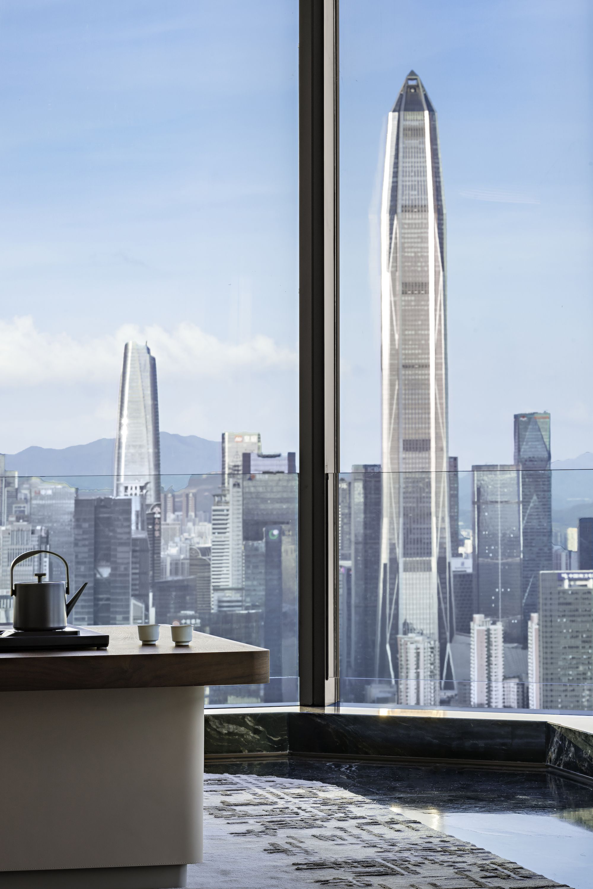 明荟致远投资总部办公会所便落址于此区域,创始人潘女士买下深铁置业大厦47层空间,作为开展风投创投事业的办公场所。三面环山,一面抱水,明荟致远投资总部办公会所拥揽自然禀赋与城市天际线,身处其中,人们视线所及处,皆是平安金融大厦、招商银行大厦等地标级建筑名片,多元开放的国际化金融生态环境一目了然。