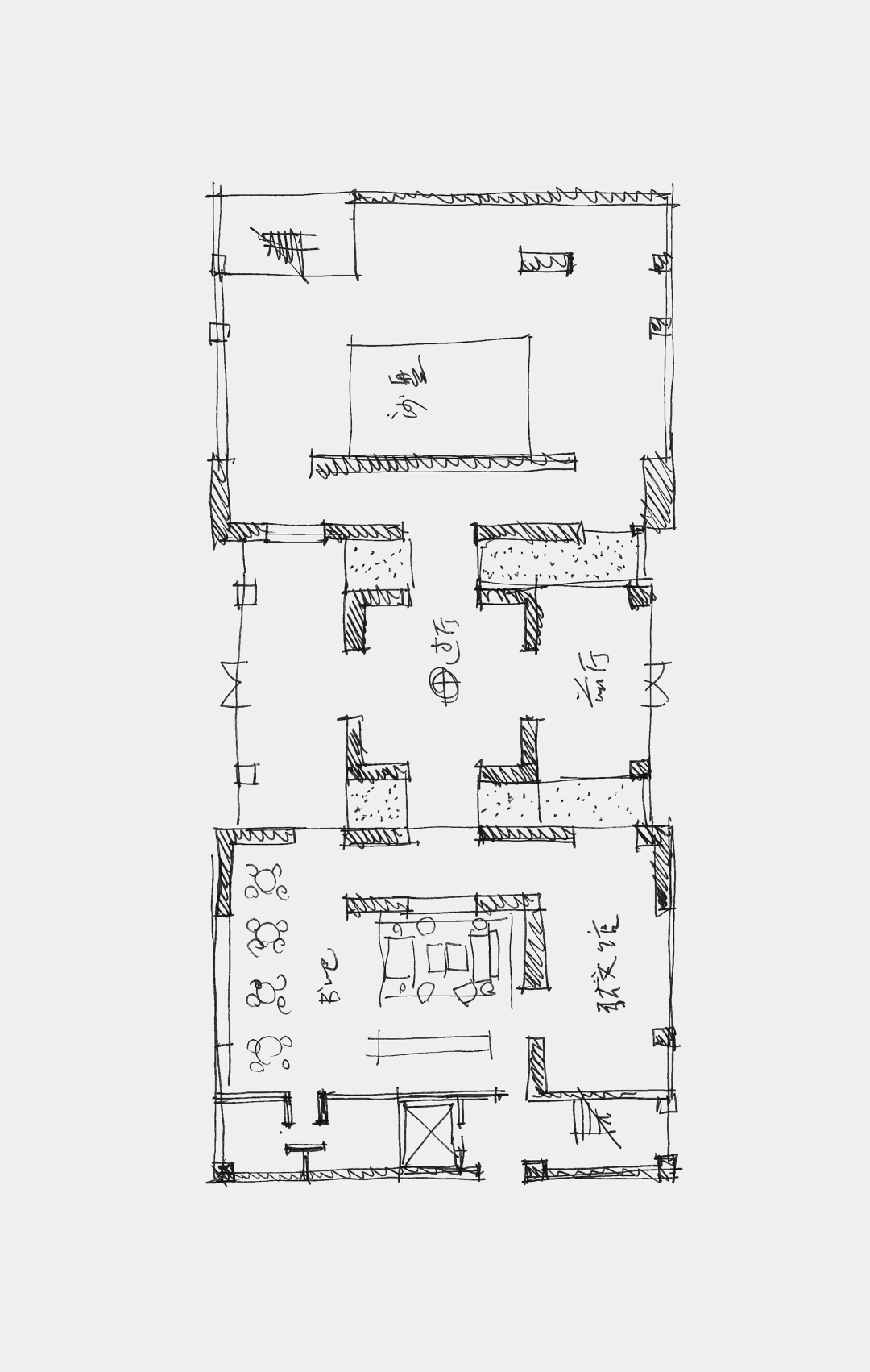李益中认为,“艺术化的表现是本案的主要线索,任何精神性的审美空间,都是化繁为简,而简洁的东西往往都充满力量。如何在平凡的空间格局里重组意境,创造出新的秩序,实现横向空间的自由流动和纵向空间的精神性,是本案的核心议题。”
