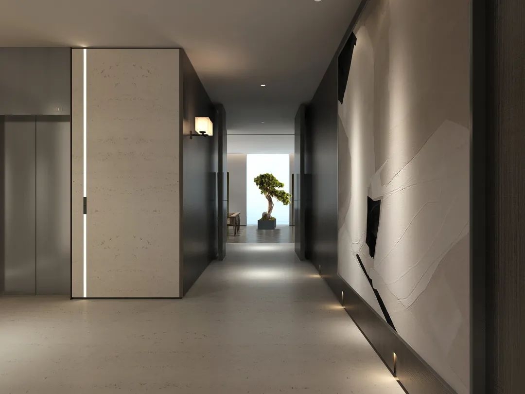 空间设计的最高境界是充分利用空间的语言实现诗意的表达和崇高的神性。过厅空间作为本案的核心空间,是人流动线的转换空间,也是超现实和神秘秩序的载体。设计师将不经雕琢的自然光引入建筑,通过空间界面的旋转、收束,创造出向上拔引的空间形态,将人的视线与想象力引向更高远深隧的世界;自上而下倾泻的光影,刻画出空间的界面形态,随着时间流转,发生明暗冷暖的微妙变化,营造出丰富的情节,空间被无限延展,产生神圣的诗意与神秘的敬畏。在四方结构的小天地,演绎出有序与无序、理性与感性、有限与无限的大千世界。