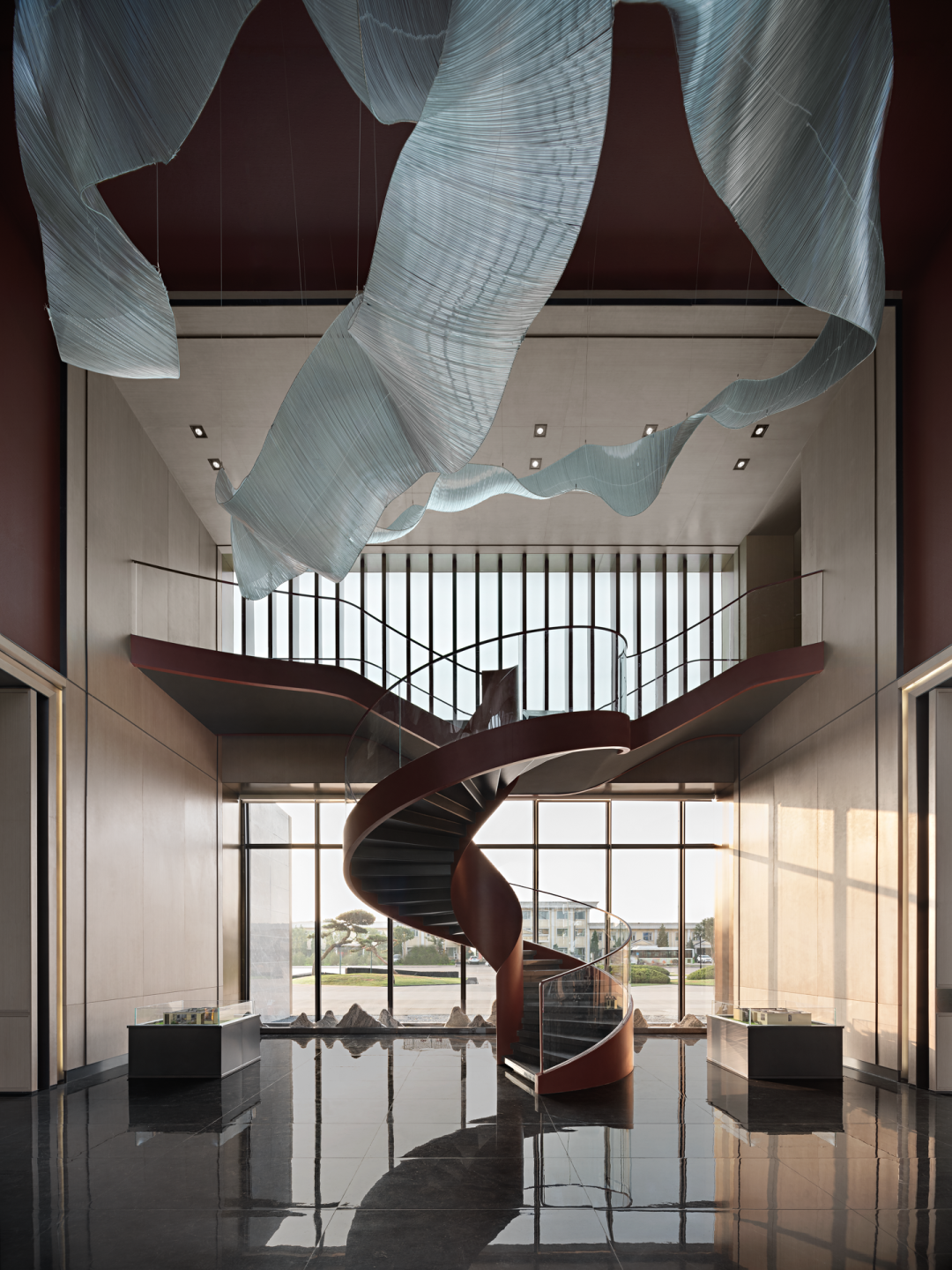 自由洒脱,生性浪漫也是刻在中国人骨子里的印记,在横竖规整的“礼制”空间内,旋转楼梯的整体设计不仅制造了一场中西文化的碰撞,更是一次中西合璧式的创新。