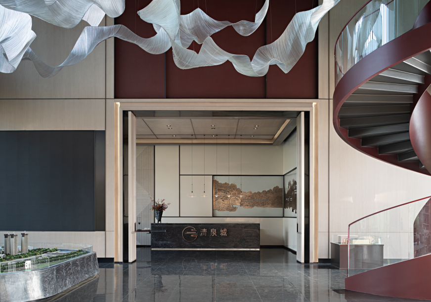 山西本身就是一座瑰丽的“中国古建筑艺术宫殿”,历史悠久,人文荟萃。金科·清泉城项目坐落于此,以书院式设计为灵感的全新场域搭建,为这片古老土地,创造了一种新旧结合的交流方式。本案在设计上采用中轴对称的手法,有张有驰,形成鲜明和谐的节奏和韵律,强调室内空间礼序感的同时,营造步移景异的空间体验。