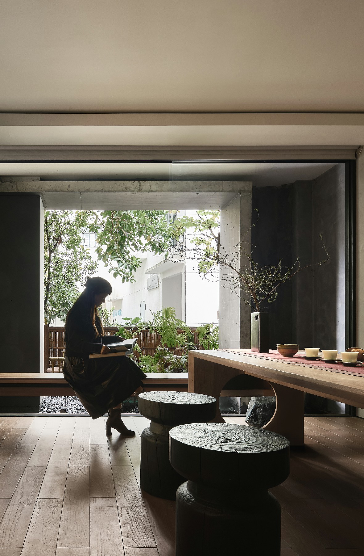 燕衔新绿,轻叩门扉,映见一片盈盈禅境。温润器物、天然石木、鲜活新绿,为空间注入一抹归心的静,与春意萌发的力量。眼望窗外,一侧旁逸斜出的葳蕤枝叶,又如自然秘境般,带来悠悠雅意,将品牌氛围有机塑造。
