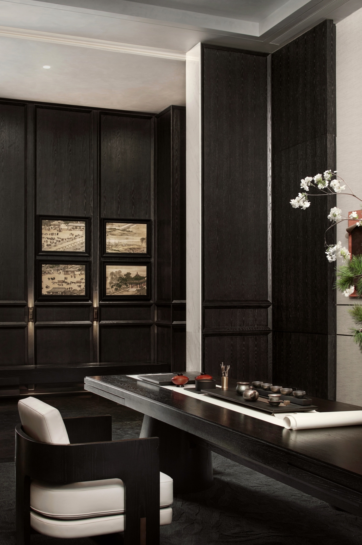 中式餐厅糅合现代美学,蕴含了淡雅的古典韵味。以时间和生活的本质之美,感受高奢设计的独有表达。